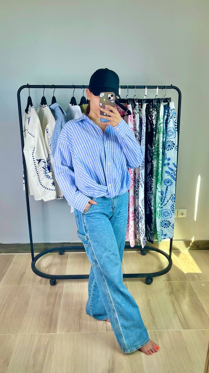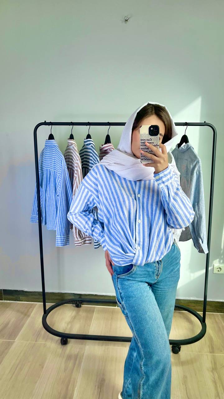 شومیز گره ای طرح خطی zara